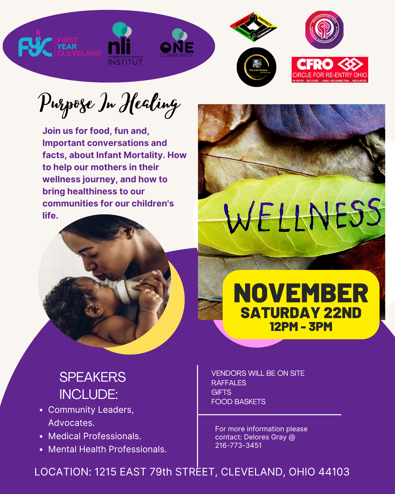 Join us for food, fun and, Important conversations and facts, about Infant Mortality. How to help our mothers in their wellness journey, and how to bring healthiness to our communities for our children's life.